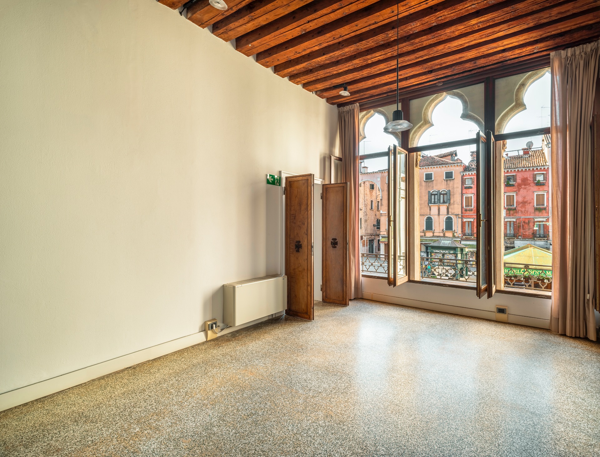 This palace was originally built around 1250, passing to several important famiies down the centuries. In a quiet tucked away location, and unusually with two historically important facades, one on a quiet campo and the other over a very picturesque canal, as well as two water gates, it is noted for its important architectural features, built according to the dictates of the late Gothic style. The original palace's flooring dates back to the mid-13th century